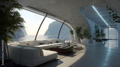 Modern Living Room Minimalist Obsidian Futuristic Japanese Style Sunny Weather Vibrant Accents Crisp Details Radiant Lighting Elegant Design Luxurious Ambiance (AI-Generated)