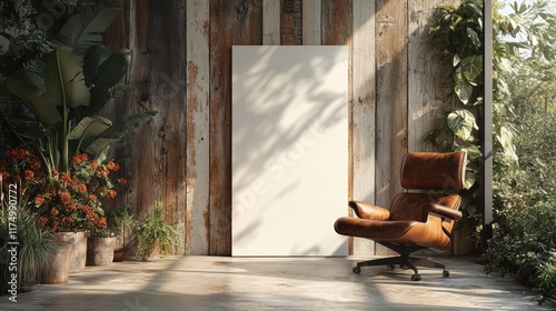 Modern Living Room with Blank Canvas and Leather Chair