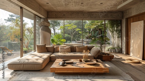 interior design, living room, modern, furniture, panoramic view, comfortable, stylish, wood, natural light, indoor, architecture, contemporary, hardwood floor, decor, residential, house, lounge, home, elegance, luxury, coffee table, cushion, plant, daylight, minimalist, cosy, roomy, glass door, tranquil, relaxation, indoor plant, aesthetic, sofa, textured, potted plants, design element, home decor, no people, peaceful, lifestyle, open space