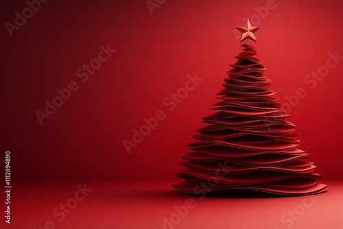 Modern Luxury Christmas Decoration Concept With Ribbon Sculpted Red Tree and Subtle Snow for Elegant Seasonal Design