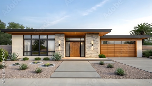 modern, house, contemporary, home, luxury, residence, architectural, design, stone, facades, wood, accent, natural, material, residential, architecture, front, view, exterior, suppressing, attracted, landscaping, low, maintenance, yard, concrete, paseo, entranceway, door, glasses, window, large, attached, garage, sleek, minimalist, clean, line, suburban, single, family, new, construction, real, estate, property, dwelling, living