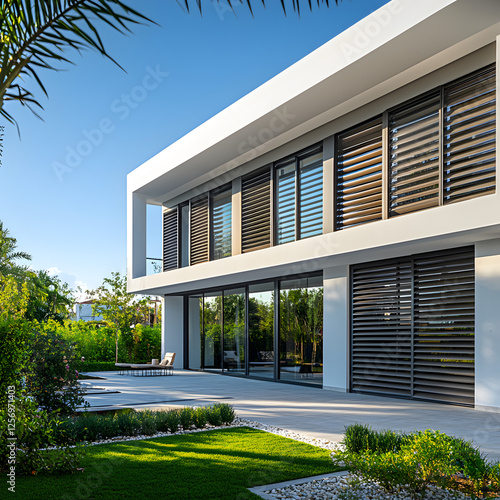 Modern Luxury Villa Exterior Mediterranean Architecture Sunlit Patio