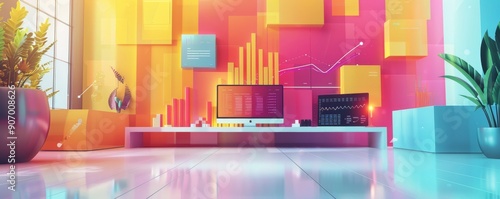 minimalist, designer, workspace, colourful, chart, graph, computer, screen, potted plants, furniture, background, inspiring, work, atmosphere, contemporary, office, desk, digital, technology, creative, design, interior, decoration, plant, graph, chart, visualisation, organised, productive, bright, dynamic, stylish, organised, sleek, trend, professional, business, office space, artistic, functional, trendy