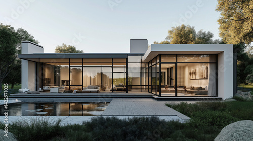 Modern Minimalist House with Glass Walls and Pool in Natural Landscape