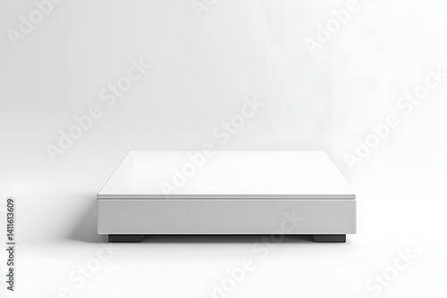 Modern minimalist white coffee table with hidden storage drawer. Simple design, clean lines, perfect for small spaces.