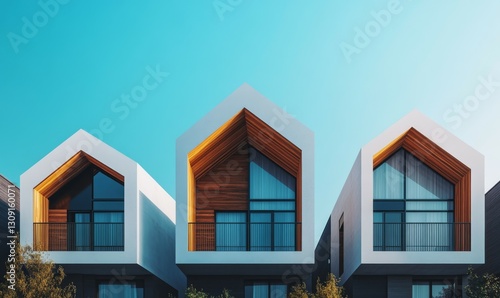 Modern modular private townhouses. Residential minimalist architecture exterior.