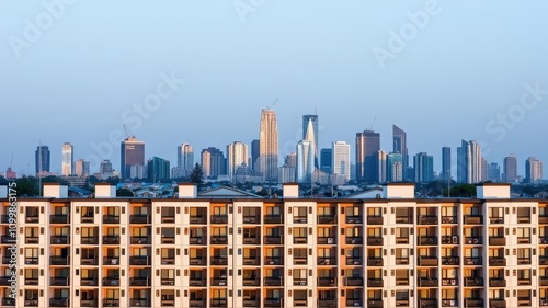 skyline, facades, modern, residential, design, unit, city landscape, block, architecture, building, urban, contemporary, module, apartment, exterior, window, balcony, modular, sleek, structure