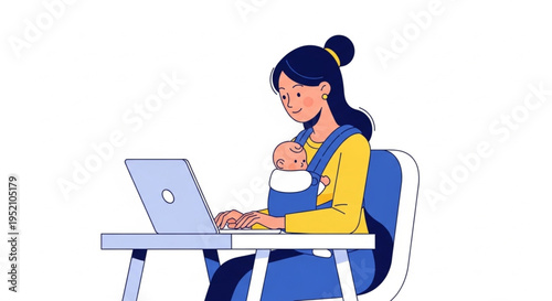 Modern Mother’s Day Card Design with Mom and Baby Cute Minimalist Vector Illustration