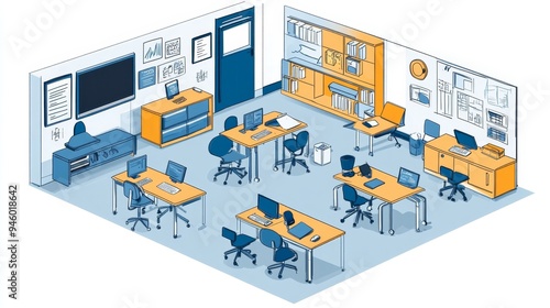 Modern Office Isometric Illustration Workplace Design