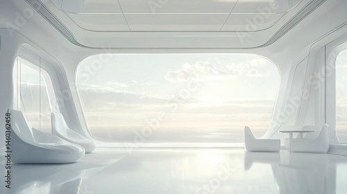 Modern office laboratory design in sticker format, featuring sleek, futuristic architecture with clean outlines against a white background.
