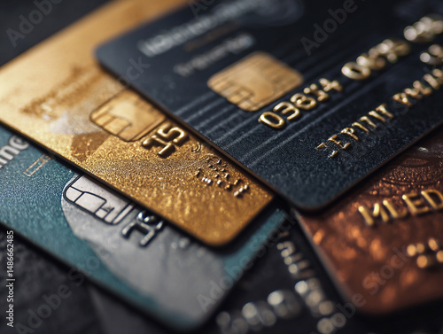 Modern Payment Methods: Closeup of Credit and Debit Cards in Financial Transactions