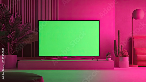 Modern Pink Room Green Screen TV Mockup Interior Design