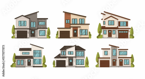 Modern Private Houses in Various Architectural Styles Vector Illustration