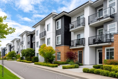 apartment, building, residential, housing, modern, architecture, real estate, property, home, exterior, facades, balcony, suburban, street, road, city, urban, new, contemporary, sky, cloud, green, tree, shrubbery, landscaped, development, condominium, complex, living, establishment, house, neighbourhood, district, town, clean, bright, elegant, investment, market, construction, lifestyle, commercial, business, window, door, wall, white, black, grey