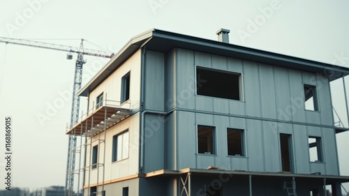 construction, building, residential, home, house, modern, architecture, crane, scaffolding, exterior, structure, development, property, real estate, new, design, frame, window, wall