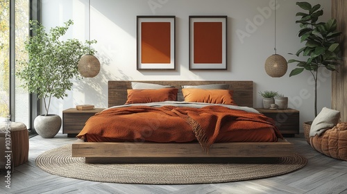 bedchamber, scandinavian, modern, interior design, cosy, home decor, plant, natural light, minimalist, warm, bed, interior, pillow, blanket, stylish, comfort, relaxation, home, natural, contemporary, rustic, trendy, light, orange, peaceful, warm tones, serene, decor, home interior, wood, comfortable