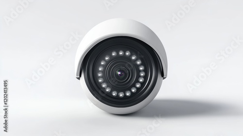 Modern Security Camera with White Design and Circular Lens View