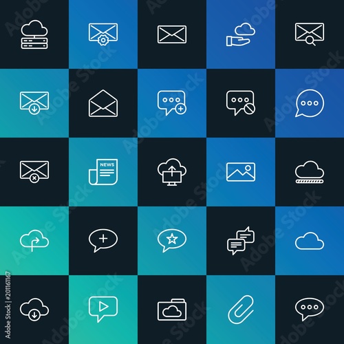 Modern Simple Set of cloud and networking, chat and messenger, email Vector outline Icons. ..Contains such Icons as chat, icon and more on dark and gradient background. Fully Editable. Pixel Perfect.