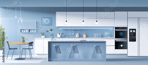 kitchen, modern, interior, design, home, appliance, smart, technology, contemporary, furniture, room, white, blue, countertop, cabinet, lighting, decor, stainless, steel, island, bar, stool, minimalism, space, light, clean, style, living, house, minimalist, decorating, aesthetic, comfortable, open, plan, functional, elegant, stylish, new, bright, cosy, brightly, lit, space
