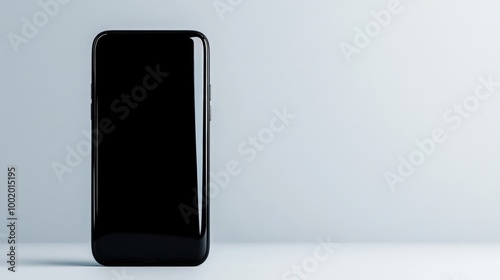 Modern smartphone on a minimalist background with blank screen.