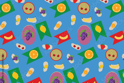Modern Sticker Style Seamless Fruit Mix Pattern For Fabric , Posters , Digital Paper ,Wallpaper