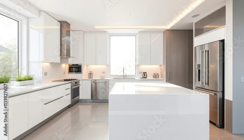 Modern Style - Kitchen Interior Design With Modern Concept - Hotel Kitchen - Apartment Kitchen Space Interior With Refrigerator - Interior Design