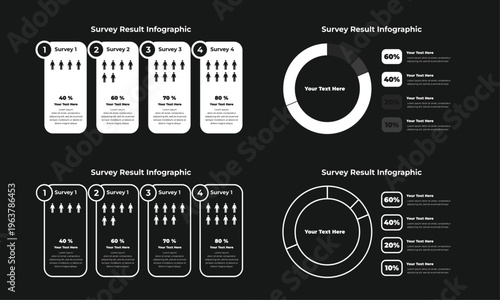 Modern Survey Result Infographic Templates with Data Visualization Charts, Percentages, and Human Icons