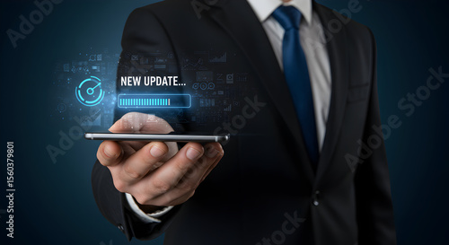 technology, update, smartphone, digital, progress, businessman, hand, professional, mobile, phone, device, screen, interface, display, software, application, app, datum, futuristic, glowing, blue, innovation, connection, cyberspace, network, system, development, improvement, download, installation, process, modern, future, communication, global, business, information technology, information technology, cyber, security, chart, graph