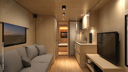 home, interior, design, tiny, house, modern, living, room, kitchen, minimalist, cosy, functional, space, apartment, small, compact, cabin, wooden, light, wood, furniture, sofa, television, screen, decor, style, architecture, simple, clean, aesthetic, comfortable, efficient, lighting, warm, wall, floor, shelf, countertop, appliance, layout, habitat