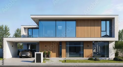 Modern Two Story House with Flat Roof and Large Windows