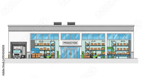 Modern Warehouse Building with Loading Dock and Delivery Truck.