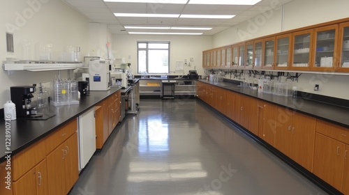 laboratory, laboratory, science, research, chemistry, biology, medicine, equipment, workspace, clean, sterile, modern, professional, analytical, technology, experiment, testing, analysis, development, discovery, innovation, investigation, health care, pharmaceutical, industrial, facility, workplace, interior, design, architecture, room, floor, cabinet, counter, shelf, window, light, bright, roomy, organised, glassware, instrument, tool, supply