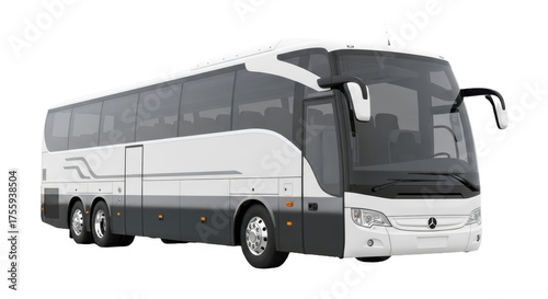 modern, contemporary, white, grey, transportation, vehicle, commercial vehicle, public transport, mobility, journey, tour tourism, travel, logistic, commute, long distance, urban, city, luxury, comfort, efficient, dependability, new, sleek, design, clean, isolated, white background, studio shot, digital artwork, illustration, render, nobody, empty, front view, half face, automotive, window, wheel, headlamp, windscreen, door