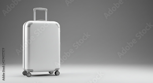 suitcase, baggage, travel, bag, carry-on, white, rolling, modern, grey background, wheeled, vacation, trip, journey, aerodrome, transportation, holiday, baggage, travel bag, packing, grey background, minimalist, clean, simple