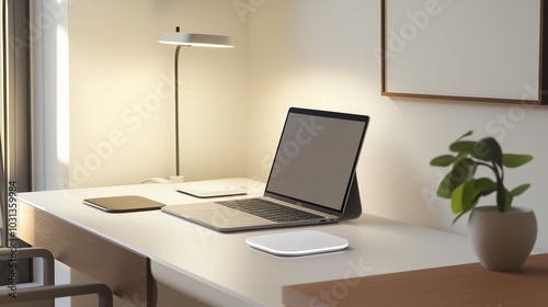 Modern Workspace with Laptop and Desk Lamp