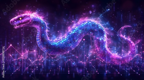 Modern Year of the Snake concept with a transparent hologram of a business growth graph