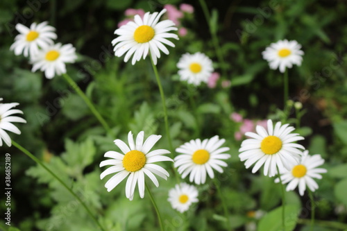 Modest daisies bloom in a summer meadow