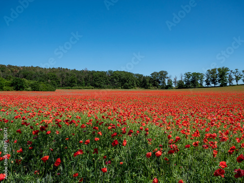 poppy, field, papaver, countryside, flower, red, heaven, meadow, nature, summer, green, blue, spring, grass, countryside, rural, cloud, plant, farming, game, pretty, wildflower, bloom, poppy field, red poppy, colours, contrast, colourful