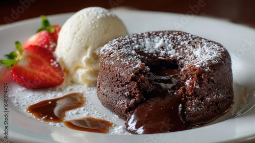 Molten Chocolate Cake Dessert, Ice Cream, Strawberries, Restaurant