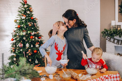 mom daughter cooking christmas gingerbread christmas tree