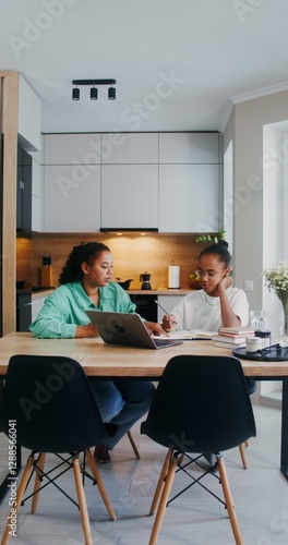 children, homework, girl, studying, typing, vertical, laptop, mother, table, use, help, texting, african ethnicity, home interior, learning, people, education, female, computer, adolescence, computer monitor, making, modern, skill, speech, student, technology, tutor