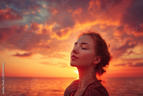delight, sunset, serene, poster, timeless, motion picture, bliss, woman, calmness, calm, coastal, ocean, silhouette, epic, cinematic, serenity, seascape, tranquil, scenic, hue, view, solitude, high-end, expression, graceful, harmonious, contentment, cover, sun, relaxed, positive, observing, dynamic, atmosphere, inner peace, free, harmonic, composed, emotional, soulful, tranquility