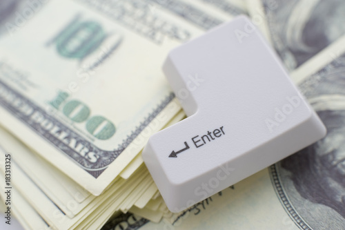 bill, dollar, banknote, american, enter, key, 100, batch, money, cash, finance, macro, closeup, concept, deal, receipt, load, sending, financial, remittance, transfer