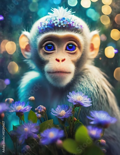 monkey with blue flowers
