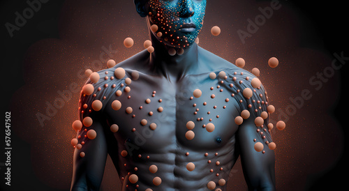 Monkeypox virus that can infect human, Monkey pox. 3d illustration, Generative AI Technology