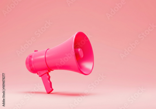 Monochromatic Pink Megaphone with Soft Shadow Standing on a Light Pink Background, Representing Loud Communication and Public Announcement