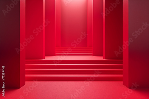 red, stair, staircase, corridor, symmetry, monochromatic, design, architecture, vanishing point, high-coloured, minimalistic, modern, interior, futuristic, perspective, geometric, structure, colourful, empty, gallery, hallway, indoor, lighting, minimal, presentation, red background, render, shadow, space, staircase, step, straight, theatrical, wall, paseo, background, conceptual, exhibit, door, room, hall, three-dimensional, entrance, open