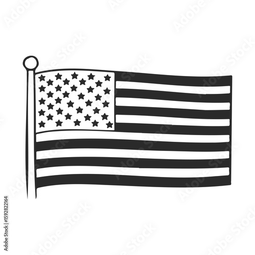 american, flag, illustration, monochrome, star, stripes, black, white, us, national, symbol, patriotic, wavy, design, freedom, independence, country, nation, patriotism, emblem, drawing, graphic, icon, banner, vignetting, united, state, line, art, minimalist, simple, concept, lined, classic, waving, pattern, pole, heritage, identification, identity