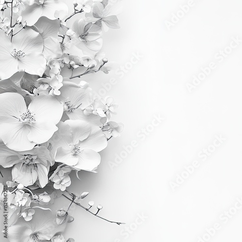 flower, monochrome, white, background, blossom, delicate, flower petals, floral, arrangement, design, art, image, picture, photo, graphic, visual, aesthetic, elegant, beauty, nature, spring, bloom, botany, plant, stem, leaf, tree branch, flora, composition, style, minimalist, simple, clean, pure, serenity, peace, calm, tranquil, soft, subtile, gentle, romantic, graceful, fresh, vibrant, artistic, creative, artwork