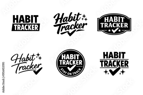 Monochrome habit tracker logos with check marks and unique typography designs